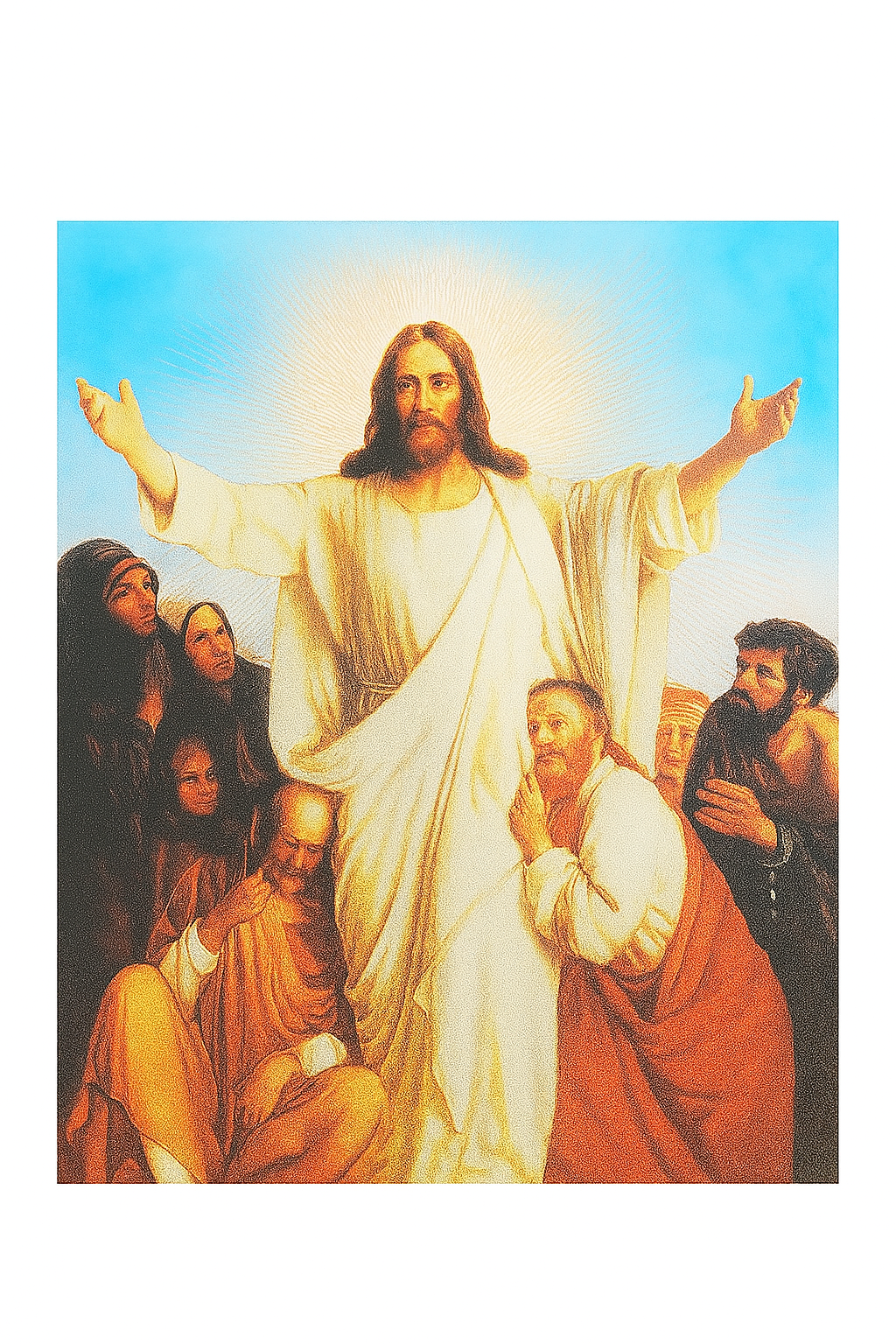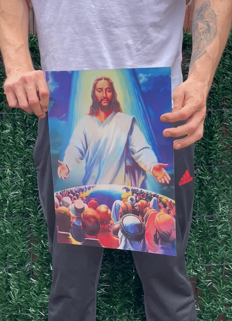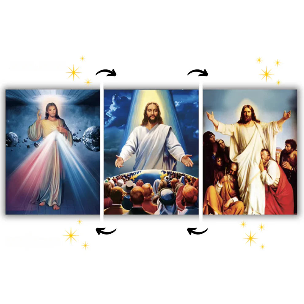 This powerful poster shifts as you move, revealing three distinct images of Jesus, each capturing a different part of who He is: the merciful healer, the risen Lord, and the returning King.👑