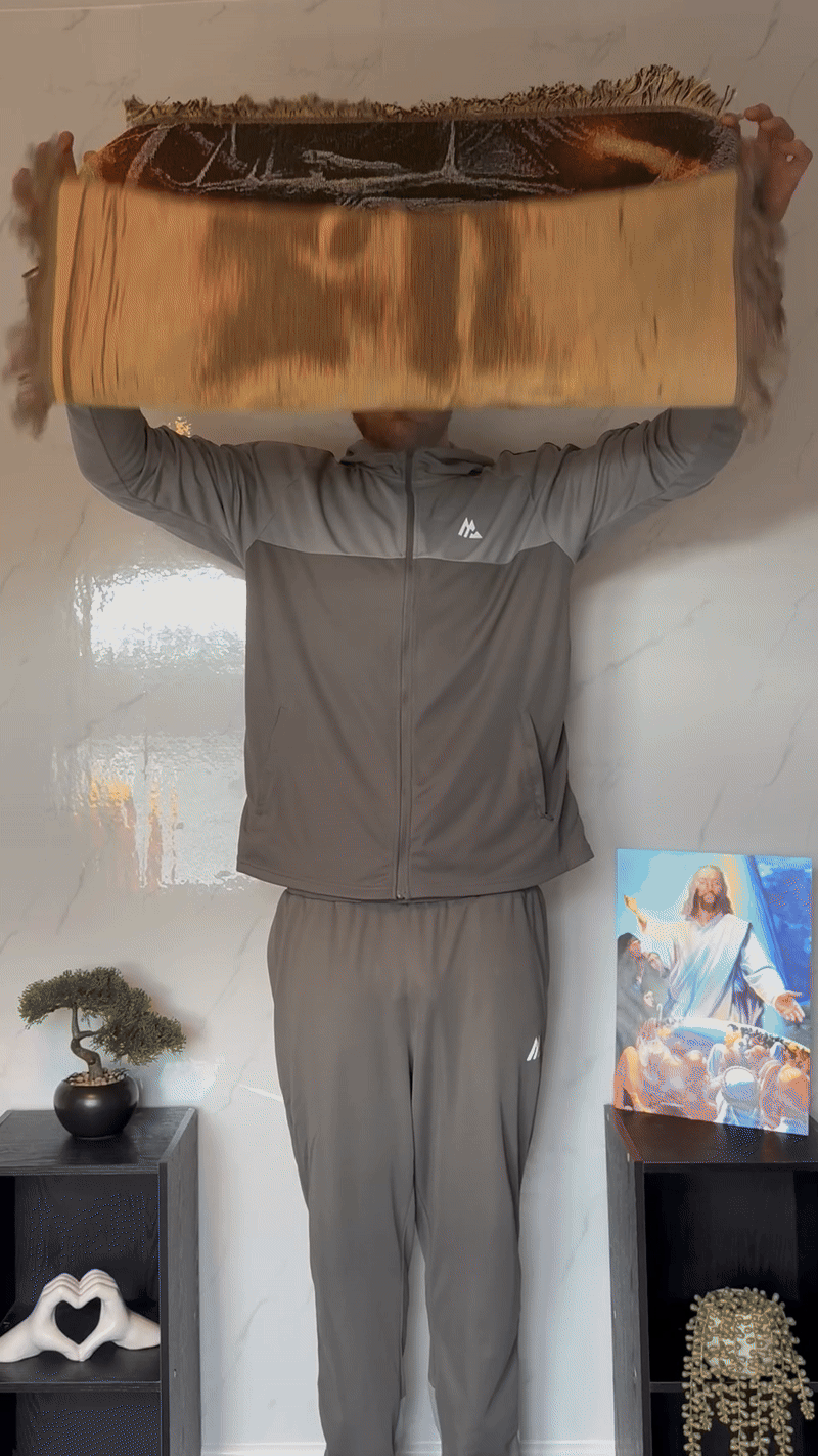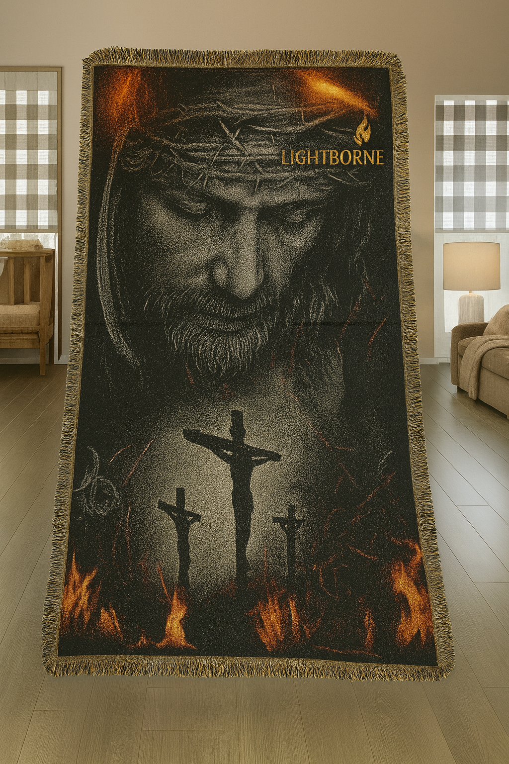 This isn’t just a blanket — it’s a woven reminder of the Cross, the sacrifice, and Christ’s victory.